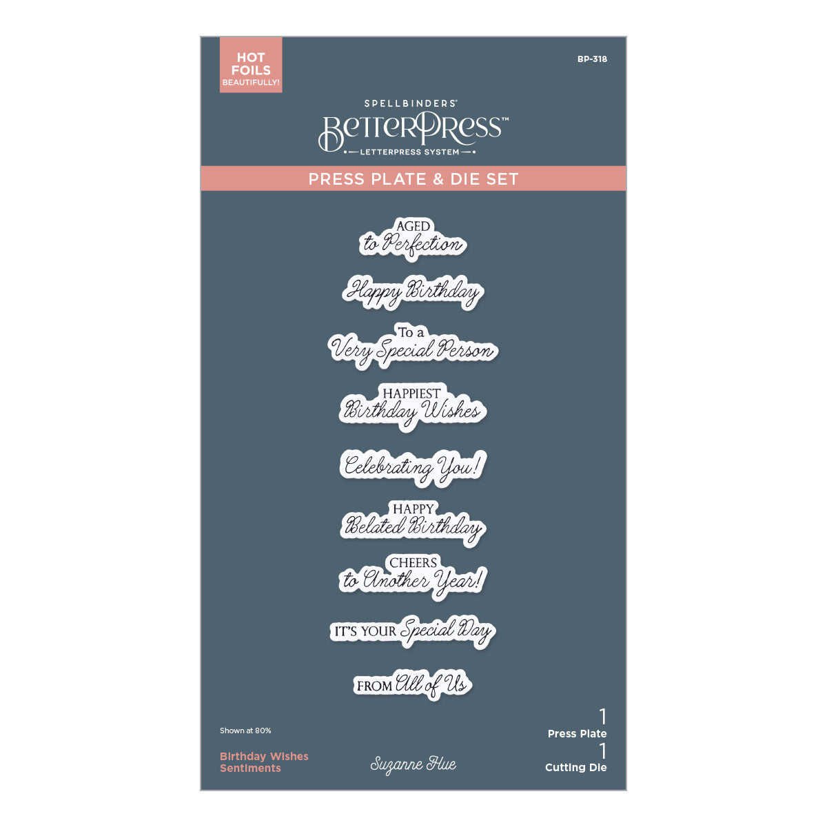 Spellbinders Birthday Wishes Sentiments BetterPress Plate & Die Set from the Texture & Foliage Collection by Suzanne Hue