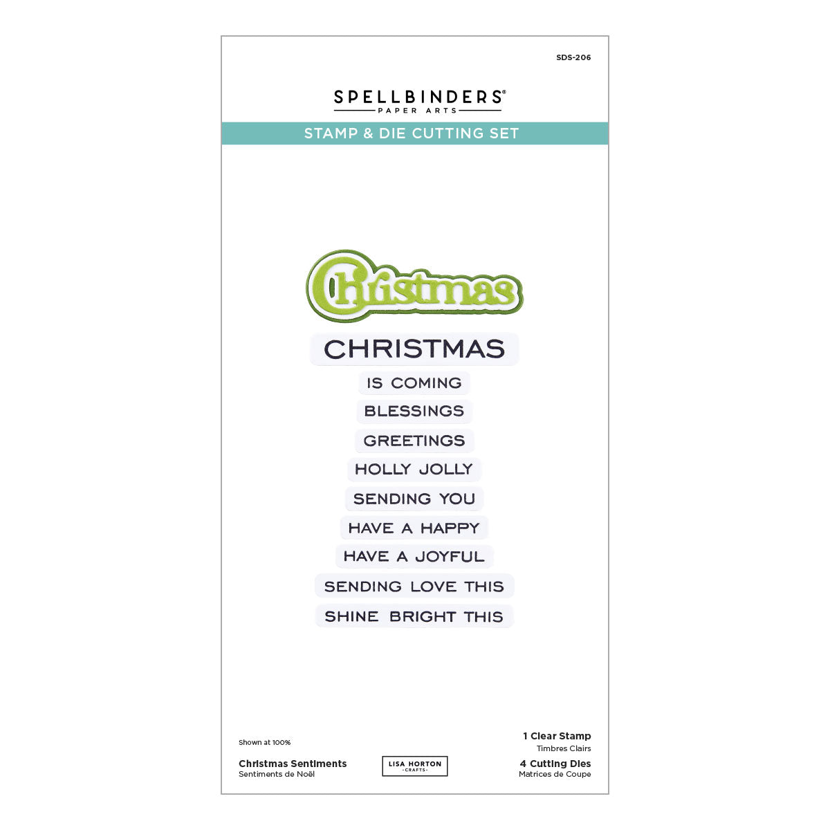 Spellbinders Christmas Sentiments Clear Stamp & Die Set from the All About Christmas Collection by Lisa Horton