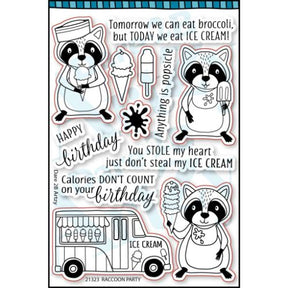 Send two scoops of summer fun with these cool critters! Our Raccoon Party Stamp Set includes an ice cream truck, three raccoons enjoying a sweet treat and a variety of sentiments to brighten anyone's day.Â