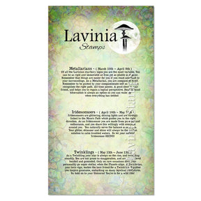 A set of three individual text stamps featuring signs of the Lavinia Fairy Zodiac in an easy to read vintage type font.
