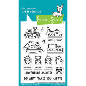 Let’s go on a summertime adventure! The critters are all packed up for a day on the beach, fishing on the lake, a bike through the park, or a summer getaway. Pair this add-on with Car Critters for more sentiments and critters.