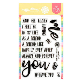 Let people know how special they are with the You & Me Stamp set! The cute font of this sentiment set works well with whimsical backgrounds like the Daisy Background Stencil. The "You", "&", and "me" stamps coordinate with the mat layer dies in the matching You & Me die set.