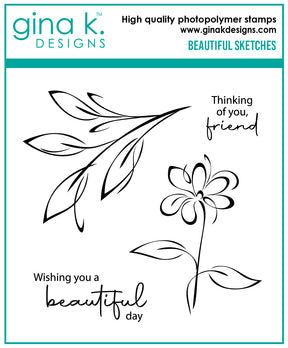 Beautiful Sketches is a stamp set by Gina K Designs. This set is made of premium clear photopolymer and measures 4" X 4". Made in the USA