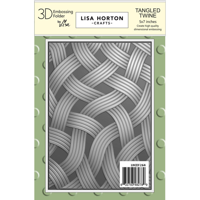 Add elegant texture to your projects with Lisa Horton Crafts 3D Embossing Folder Tangled Twine. This 5"x7" folder creates deep, dimensional impressions with a stunning Tangled Twine pattern's perfect for cards, journals, and mixed media. Works with most embossing machines.