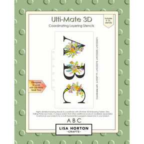 Includes nine highly detailed slimline layering stencils featuring letters ABC all with floral embellishments. These stencils are part of a unique system that offers additional products (available separately), to enhance your projects with a multi layered/decoupaged unique look. These stunning layering stencils can be used as a background or focal point on your projects perfect for cards, scrapbook layouts or journal pages. This set coordinates with matching Lisa Horton Crafts Ulti-Mate 3D Slimline 3D Embossing Folder & Dies ABC (LHCEF111). Designed for use with the Ulti-Mate Multi Tool (LHCUM001), these stencils have an edge lined with holes to secure them. This ensures perfect and precise results every time. An essential in your craft stash! Designed by Lisa Horton.