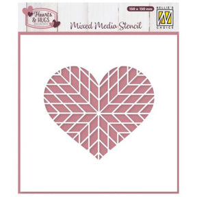 Nellie Snellen Mixed Media Stencil. Geo Heart. 15 x 15 cm.
