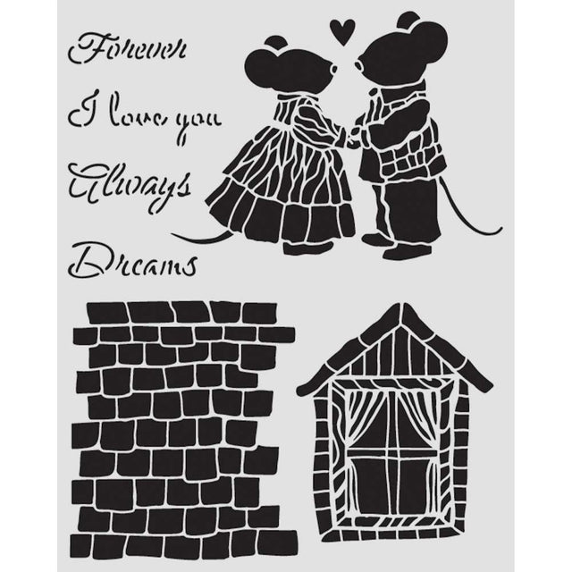 Stamperia Family Thick Stencil 20×25cm House and Mice (KSTD196)