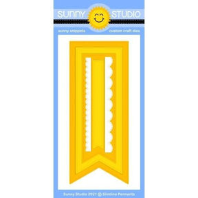 This 6-piece die set includes two scalloped border dies and creates stitched pennant banners in 4 sizes perfect for your slimline cards and scrapbook pages. The smallest pennant is perfect for stamping with greetings for your cards, while the larger sizes work well for mounting images or building scenes on.