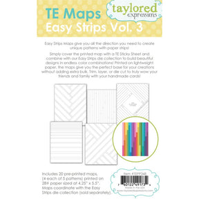 Easy Strips Maps Vol. 3 makes it easy to create fun patterns with paper strips! Simply cover the printed map with a TE Sticky Sheet and combine with our Easy Strips die collection to build beautiful designs in endless color combinations! Printed on lightweight paper, the maps give you the perfect base for your creations without adding extra bulk. Trim, layer, or die cut to truly wow your friends and family with your handmade cards!
