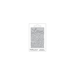 Lots of options with this single die! The Love You So Much Block Die cuts the words out of cardstock like a window. Use it as is, or cut a simple rectangle shape around the outside edge after die cutting to use the greeting on its own. 1 piece.