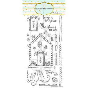 Make the holidays sweeter with the Gingerbread House Slimline Clear Photopolymer Stamp Set featuring the illustrations of Anita Jeram for Colorado Craft Company. The set includes clear photopolymer stamps with a gingerbread house, tiny mice and countless candy pieces to decorate your gingerbread house. This 9.25 x 4.75 inch package includes the Gingerbread House Slimline stamp set measuring 4 x 8 inches. It includes 21 stamps, 17 images and 4 sentiments. The largest stamp is 3 x 3.75 inches and the smallest stamp is 0.25 x 0.25 inches. The stamps can be used with the coordinating Gingerbread House die set sold separately (AJ534-D). Sentiments included in the set: Sugar & Spice, Make Christmas So Nice, Merry Christmas, and Sweetest Christmas Ever! Made in the USA.
