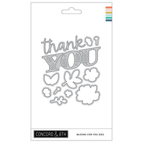 The Blooms for You Dies cut around the individual stamped floral images in the coordinating Blooms for You Stamp Set and also contains an alternative thank you greeting to use on your cards and other projects