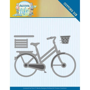 The active life bicycle die is a set of dies containing the bicycle and accessories to add (basket, crate). Approx.size of bike: 3.2" x 2.125"