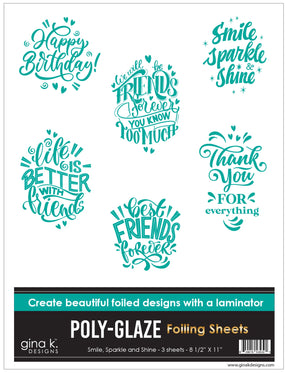 Gina K Designs POLY-GLAZE Foiling Sheets- Smile, Sparkle and Shine