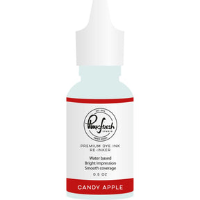 This re-inker compliments our dye Candy apple dye ink pad. Our USA made premium dye ink is acid free, making it perfect for stamping on your cards/scrapbooks or any other paper crafting project. This ink is fast drying, and perfect to use for water based techniques.