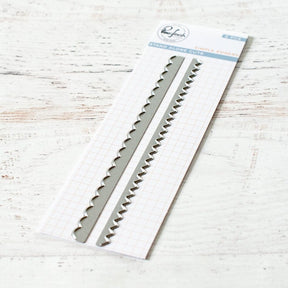 2 pc die set to create pretty edgers for your cards. This can be used with our washi tapes PFWA03 (matte gold washi tape) and PFWA06 (water color fantasy washi tape) as well.