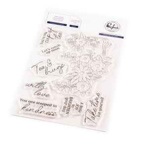 This tea-themed stamp set, designed by Paper Raven Co., is perfect for tea lovers. The centerpiece of