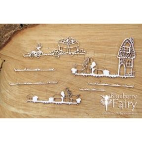 This 3.75" x 3.75" sheet contains 7 laser cut elements. Approx. size of mushroom house border: 3.5" x 2.3"